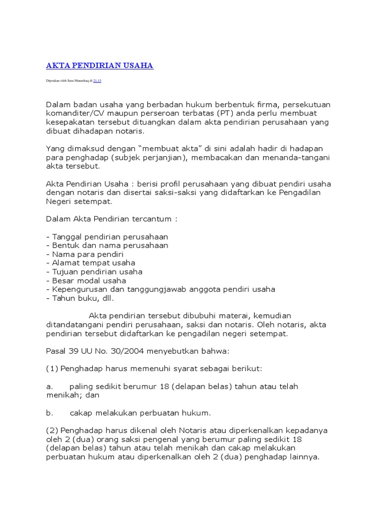 Contoh akta pendirian usaha. 1 pada hari ini rabu tanggal 03 04 2013 tiga april dua ribu tiga belas pukul 1010 wibsepuluh lewat sepuluh menit waktu indonesia bagian barat sampai dengan selsai. Akta pendirian tersebut dibubuhi materai kemudian ditandatangani pendiri perusahaan saksi. Contoh akta pendirian usaha dagang oleh notaris akta pendirian usaha dagang. Terutama untuk maksud dan tujuannya. Dimana dalam contoh berikut hanyalah alternatif2 yang memungkinkan. Dimana menurut website web wwwbpjsketenagakerjaangoid persyaratan untuk mempunyai sertifikat bpjs ketenagakerjaan yaitu sebagai berikut.