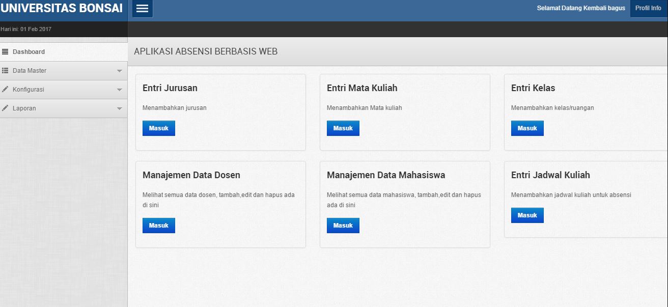 Contoh aplikasi absensi berbasis web. Pada post kali ini dsg akan menyajikan pilihan aplikasi absensi karyawan gratis terbaik dan beberapa diantaranya bahkan tidak memiliki batasan jumlah pengguna dan admin. Aplikasi absensi karyawan berbasis web aplikasi absensi dengan sistem komputasi merupakan solusi terbaik guna memecahkan masalah penggunaan absensi yang biasanya dilakukan secara manual. Berikut screen shot aplikasi absensi karyawan berbasis web. Dengan sistem ini pencatatan data dan monitoring dilakukan secara realtime sehingga karyawan bisa melihat rekap absensi mereka sendiri secara online. Aplikasi absensi karyawan dengan php adalah software absensi berbasis web yang berfungsi untuk rekap absen karyawan harian. Aplikasi absensi sekolah berbasis web aplikasi absensi sekolah adalah aplikasi software yang sengaja dibuat guna melengkapi kebutuhan mengenai absensi sekolah seiring dengan perkembangan dunia komputeraplikasi ini dibuat dengan bahasa pemrograman php dan mysql serta aplikasi ini berjalan dengan sangat real time.