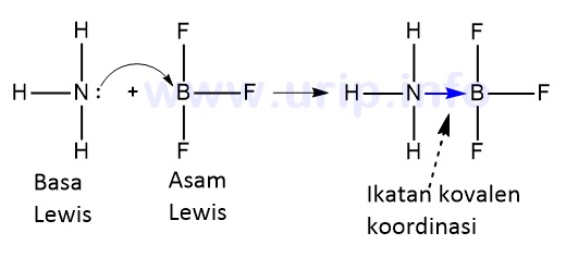 Reaksi antara boron trifluorida dengan amonia menurut teori ini merupakan reaksi asam basa. Basa adalah donor pasangan elektron.