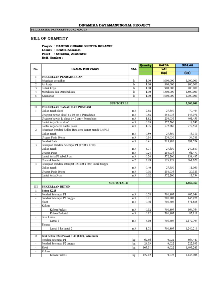Contoh Bill Of Quantity Rab