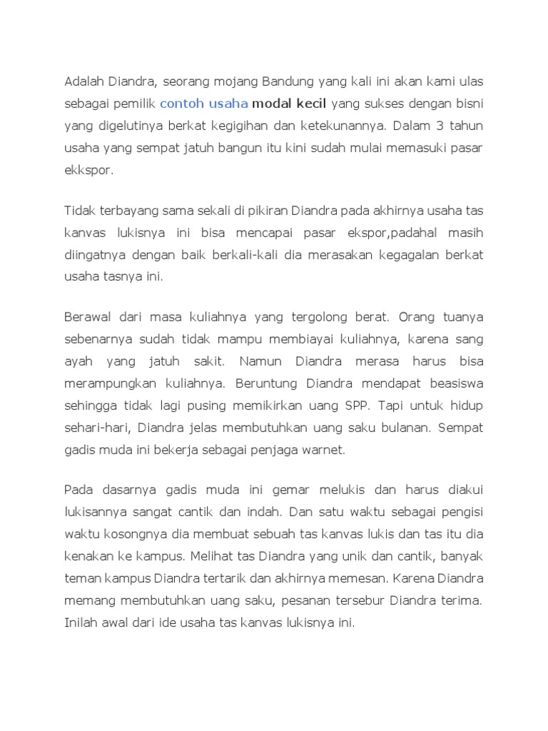 Ada beberapa produk dalam negeri yang diterima pasar luar negeri sangat menjanjikan dan menguntungkan untuk diekspor ke berbagai negara di dunia. 10 bisnis franchise modal kecil kurang dari 10 juta modal kecil yang dimaksud untuk usaha waralaba biasanya dikisaran rp 1 juta hingga rp 50 juta rupiah. Salam rancage mengolah limbah koran bekas menjadi produk mebel bernilai jual tinggi seperti meja kursi lemari keranjang pakaian keranjang sampah hiasan dinding vas bunga tikar rak sepatu kap lampu tempat tisu hiasan dinding. Bisnis waralaba adalah salah satu model bisnis yang banyak dilirik oleh para pengusaha saat ini baik itu pebisnis baru pemula ataupun pebisnis yang sudah berpengalaman. Contoh usaha waralaba pun bermacam macam jenisnya yang pasti produk dari usaha tersebut sangat familiar di tengah masyarakat dan banyak peminatnya. Karena persaingan di dalam negeri yang semakin ketat sedangkan barang dari dalam negeri banyak di minati oleh pasar luar namun masih minim yang memanfaatkanya.