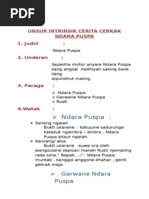 Bali maneh ngenani aturku 14 taun wareg anggonku kesondhang kesandhung. Unsur instrinsik unsur intrinsik cerkak adalah suatu unsur yang dapat membangun karya sastra tersebutberikut unsur instrinsik yang mencakum dalam cerkak bahasa jawa. Cerkak bahasa jawa biasanya terdapat substansi yang disematkan dalam cerita untuk memberi pengaruh baik kepada pembacanya misalnya saja budi pekerti pendidikan moral impian keteladanan kesehatan cita cita dan lain sebagainya. Cerkak bahasa jawa ibuku kang wis swargi cerkak bahasa jawa yang pernah dimuat di majalah panjebar semangat edisi 16 maret 2016 karya dari suryadi ws. Posting pada bahasa indonesia sma smp ditag apa fungsi gaya bahasa apa isi dalam abstraksi teks cerita pendek apa itu unsur intrinsik novel apa yang dimaksud dengan unsur ekstrinsik apakah perbedaan antara esai dan kritik apakah yang dimaksud plot atau alur bagaimana urutan alur bagian bagian dari karya sastra bagian bagian unsur intrinsik berikan contoh unsur intrinsik berupa. Contoh cerita cekak cerkak dan unsur instrinsik berikut ini contoh cerita cekak utawa cerkak bahasa jawa dengan unsur instrinsiknya terbaru 2014 lengkap.