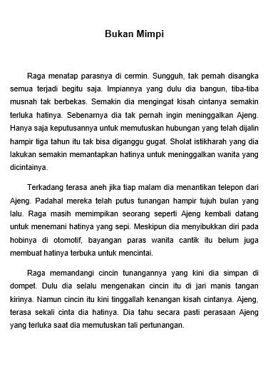 Kumpulan contoh cerpen singkat cerpen atau cerita pendek merupakan suatu bentuk prosa naratif fiktif. Cinta itu soal ketulusan dion dan rani merupakan sahabat semasa kecil.