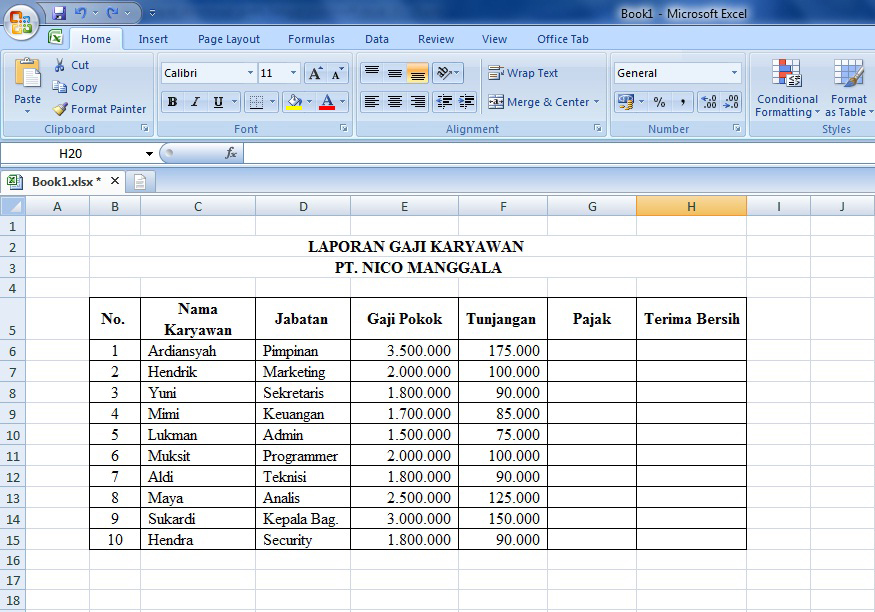 Buatlah dua sheet yang pertama diberi nama data karyawan dan yang kedua slip gaji. Contoh file excel menghitung gaji karyawan dibawah ini saya sertakan contoh file penghtungan gaji karyawan yang telah kita bahas.