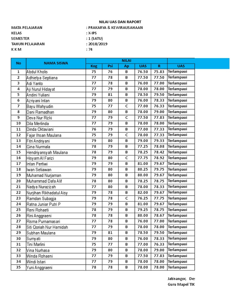 Contoh daftar nilai siswa. Contoh format daftar nilai siswa terbaru ini bisa digunakan untuk semua jenjang pendidikan mulai dari sdmi smpmts serta smama. Pada artikel sebelumnya sudah dibahas contoh download absensi siswa rekap otomatis excel selanjutnya admin belajar office akan berbagi contoh format daftar nilai ulangan siswa menggunakan rumus excelformat nilai ini dikhususkan untuk sobat sobat guru disekolah. Menjelang tahun ajar 20202021 setiap tenaga pengajar sudah harus segera mempersiapkan administrasi guru kurikulum 2013 dari mulai perangkat pembelajaran hingga format untuk penilaian siswa. Download contoh daftar nilai siswa kurikulum 2013 semester 1 dan 2 klik disini dwonload contoh agenda kegiatan mengajar ktsp k13 klik disini baca juga. Selengkapnya bagi anda yang membutuhkan contoh format daftar nilai siswa kurikulum 2013 revisi 2017 bisa mengunduhnya pada tautan link yang saya sematkan dibawah ini. Berikut ini contoh daftar nilai siswa kurikulum 2013 untuk sdmi smpmts smasmkma tahun 2019 2020 sesuai tema dan subtema.