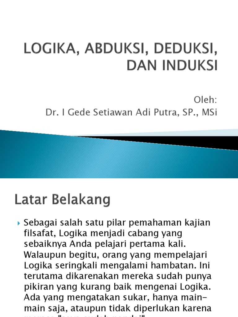 Contoh deduksi dan induksi. Contoh induksi deduksi dan abduksi dalam ilmu filsafat. Induk si penalaran yang dimulai dengan mengemukakan pernyataan pernyataan yang mempunyai ruang lingkup yang khas dan terbatas dalam menyusun argumentasi yang diakhiri dengan. Induksi adalah ilmu eksakta mengumpulkan data data dalam jumlah tertentu dan atas dasar itu menyusun suatu ucapan umum. Paragraf campuran dikembangkan dengan pola deduksi induksi yaitu pola pengembangan yang memaparkan kalimat utama dan diselingi kalimat kalimat penjelas kemudian ditarik simpulan pada akhir paragraf yang juga merupakan kalimat pendukung kalimat utamanya. Observasi dan eksperimen dilakukan untuk mengenai gejala gejala dengan tepat dan saksama sedang hipotesis dan induksi membuat rumusan dari hukum hukumnya. And have 3 komentar facebook twitter google linkedin technorati digg.