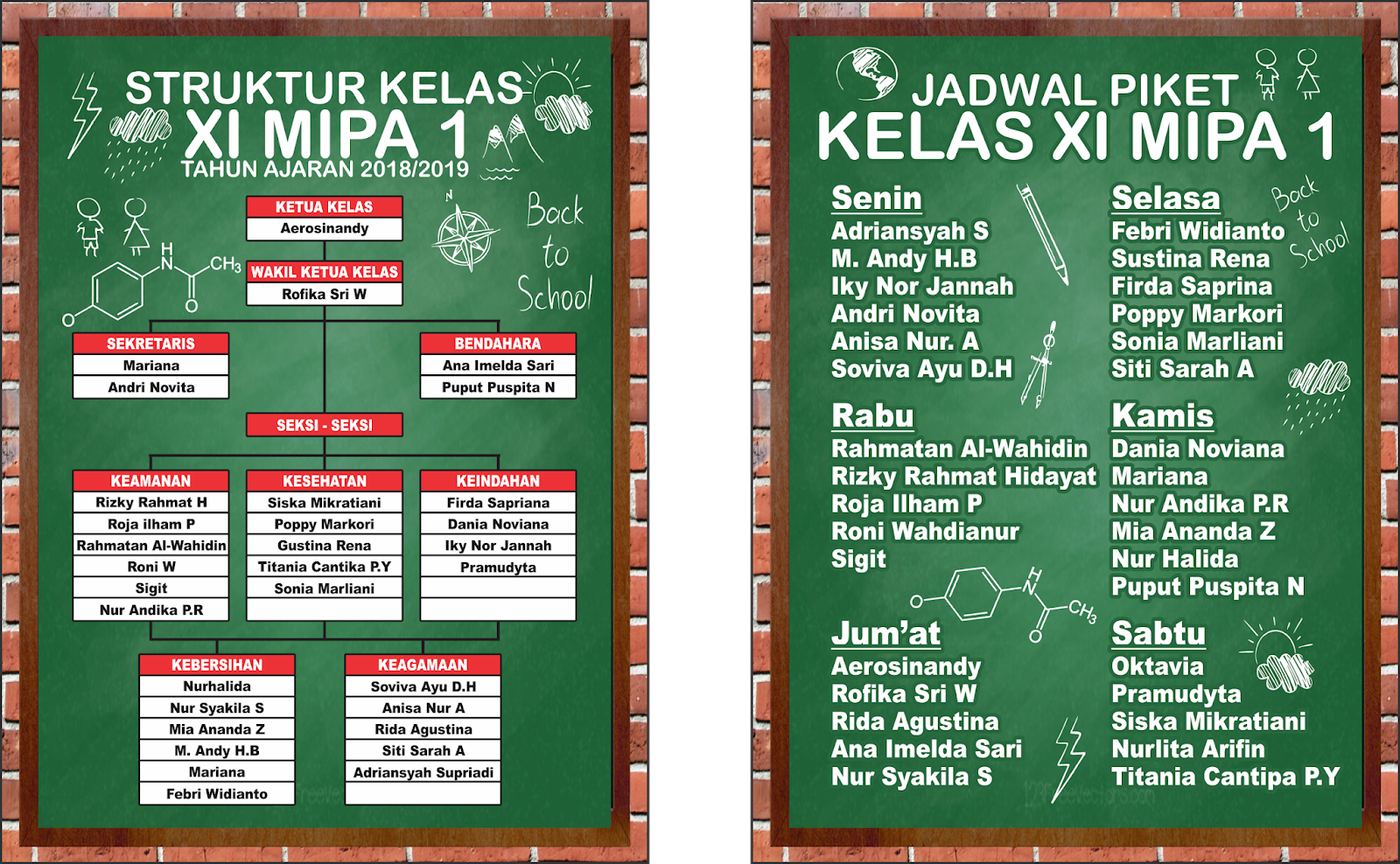 Untuk referensi desain contoh jadwal piket yang unik dan kreatif kalian bisa terapkan contoh gambar ini di karton. Ok langsung saja untuk download desain jadwal piket kelas yang super keren unik keatif dan super gampang editnya silahkan pilih desain kelas yang keren klik link di bawah ini. Berikut ini saya poskan contoh desain untuk jadwal regu piket dan struktur organisasi kelas yang biasa dipasang di. Contoh desain jadwal pelajaran super.