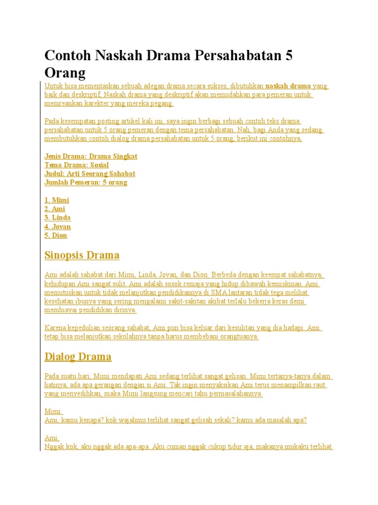 3 tiga orang karakterpenokohan. Contoh percakapan kerap kali digunakan untuk memperdalam ketrampilan para siswa untuk melakukan sebuah dialog percakapan. Drama singkat jumlah pemeran. Dialog juga dapat menyoroti perbedaan budaya dari masing masing karakter. Contoh dialog 3 orang tentang pendidikan dialog memiliki banyak fungsi dalam karya sastra atau saat menulis fiksi. Devi silahi sebagai diva inspirator janah azizah sebagai janah penyemangat.