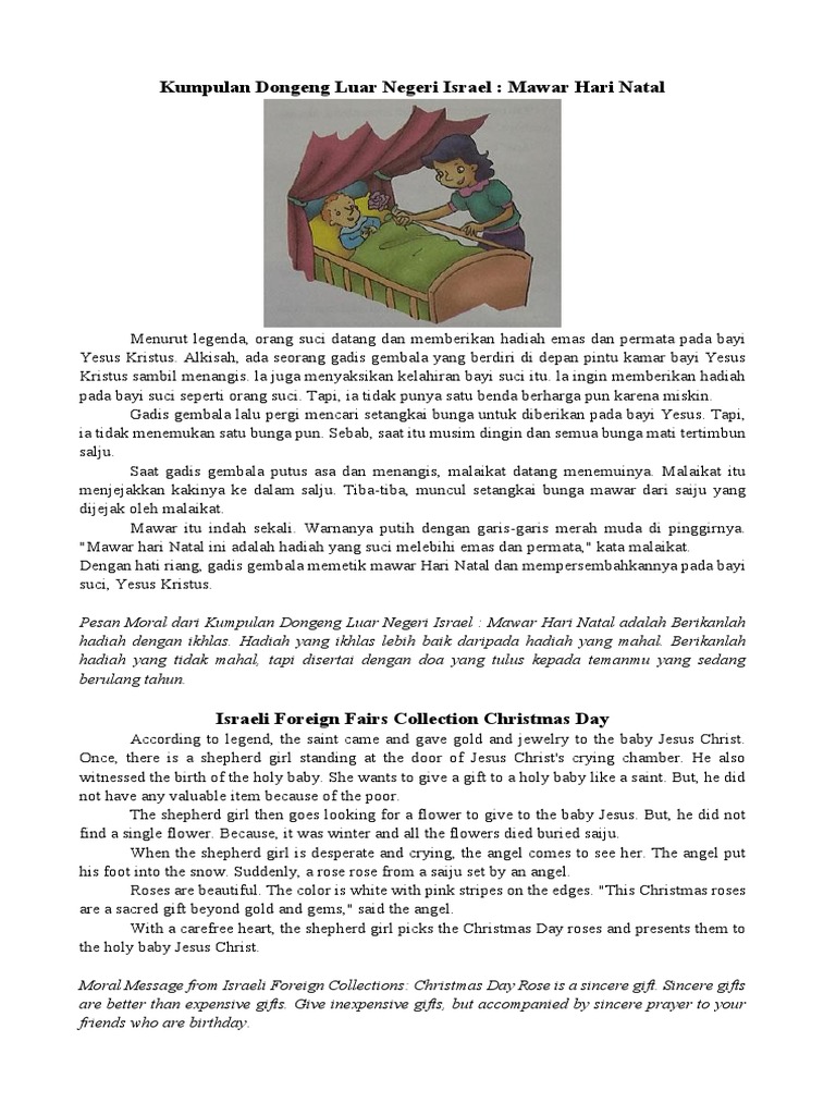Berikut 2 contoh dongeng populer di indonesia dalam bahasa inggris. 10 contoh cerita binatang dalam bahasa inggris dan artinya terbaru cerita binatang dalam bahasa inggris yang biasa termasuk dalam narative text sangat membantu sahabat sahabat sbi untuk menguasai skill dalam bahasa inggris khususnya reading skill. Tidak hanya memiliki generic structure yang baik tapi juga mengandung nilai moral yang bisa dijadikan contoh oleh si pembaca. Once there was a couple living in a royal residence. 9 contoh teks short story telling dalam bahasa inggris beserta artinya story telling is the interactive art of using words and action to reveal the elements and images of 9 contoh teks short story telling dalam bahasa inggris dan artinya lengkap story telling biasanya menceritakan tentang legenda yaitu cerita rakyat ataupun. Berbagi dongeng bahasa inggris bisa menjadi contoh narrative text yang berkualitas.