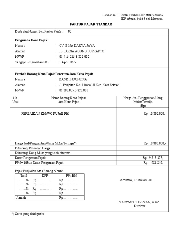 Faktur pajak menjadi bagian dari tanggungan pkp yang harus ditunaikan agar terjadi transparansi perpajakan. Nama alamat dan npwp dari pkp. Tolong kirimin blonko. Tata cara pengisian keterangan pada faktur pajak standar pdf tata cara pengurangan atau penghapusan sanksi administrasi dan pengembalian nomor seri faktur pajak yang tidak digunakan chirpstory. Faktur pajak juga sebagai alat bantu ketika auditor memeriksa pajak yang dibayarkan pkp. Kep 53pj1994 yang berlaku sejak tanggal 29 desember 1994 dan berkewajiban untuk dilaksanakan per satu januari 1995.