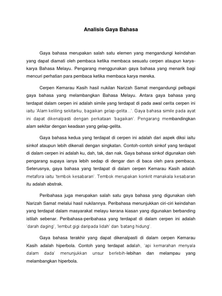 Unsur Intrinsik Cerpen Gaya Bahasa