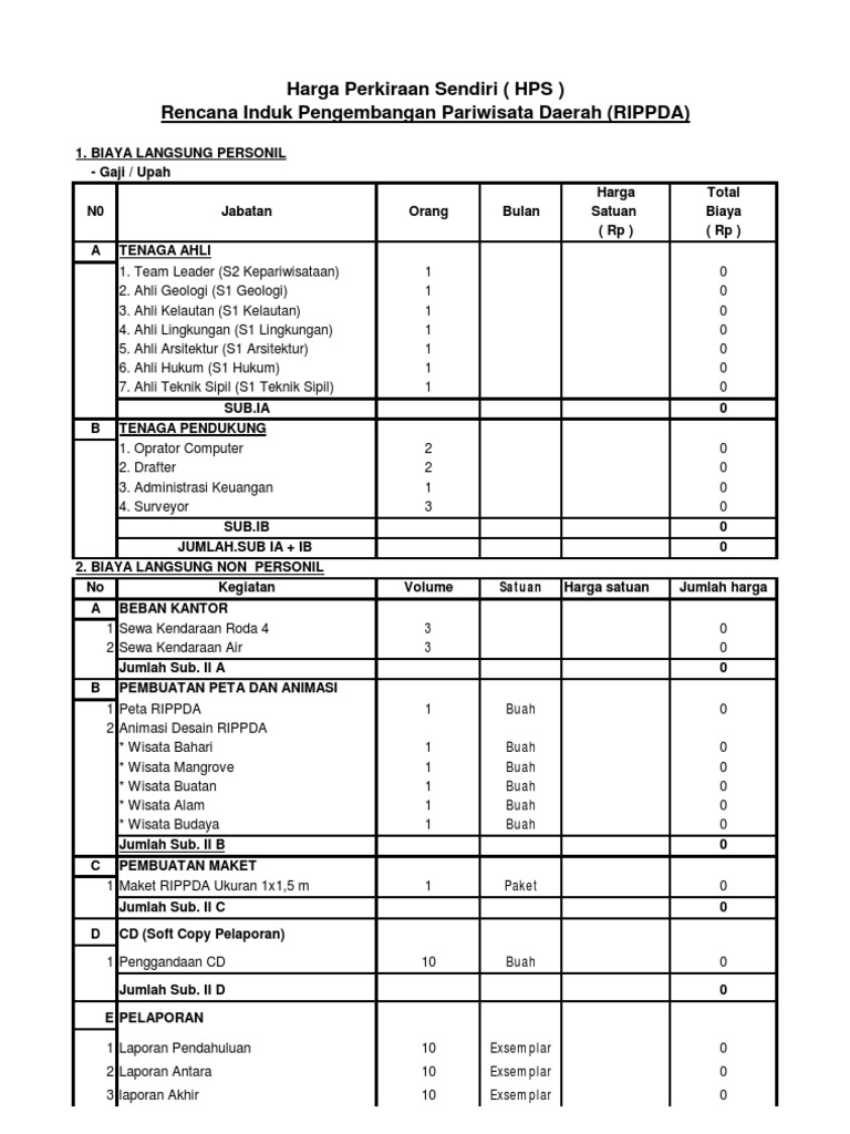 Perkiraan jumlah bahan kimia habis pakai yang dibutuhkan dalam satu bulan. Penyusunan harga perkiraan sendiri hps pekerjaan jasa konsultansi salah satu fungsi hps adalah sebagai alat untuk menilai kewajaran penawaran termasuk rinciannya.