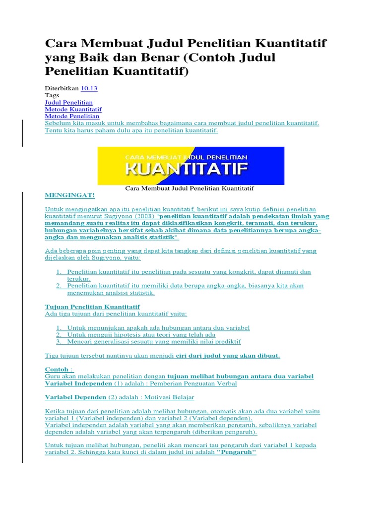 Cara membuat judul penelitian kuantitatif yang baik dan benar artikel ini menjelaskan bagaimana cara membuat judul penelitian.