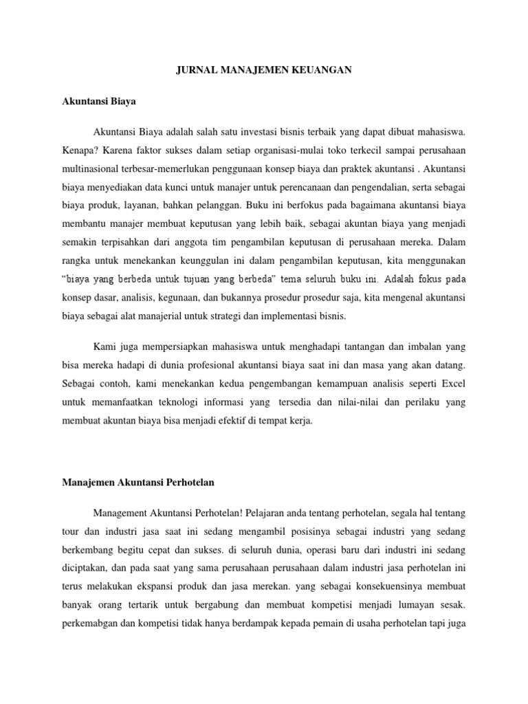 Masing masing contoh laporan keuangan terdiri dari 5 jenis laporan keuangan utama yaitu. Artikel ini kami buat karena ada beberapa rekan kami dari jakarta meminta untuk membagikan jurnal managemen pemasaran. Selengkapnya mari simak ulasan berikut ini. Manajemen keuangan tidak akan lepas dari biaya modal laba dan laporannya. Klik di sini untuk informasi file lengkap contoh esai tentang manajemen selengkapnya. Banyak orang berpikir bahwa pada dasarnya mengelola keunagan adalah hal yang mudah namun sebenarnya tidaklah demikian karena itu makin menjamurlah financial trainer atau consultant financial di negara ini.