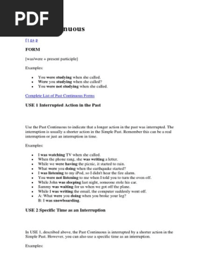 Oleh karena itu kita perlu memperhatikan secara cermat penggunaan kata kerja dalam bentuk continuous agar bisa menghasilkan suatu kalimat yang tepat dan sesuai dengan ketentuan tata bahasa inggris yang baik. Past continuous tense atau biasa juga dikenal dengan past progressive tense adalah tense yang digunakan untuk menyatakan kegiatan yang sedang terjadi pada waktu tertentu di masa lampau.