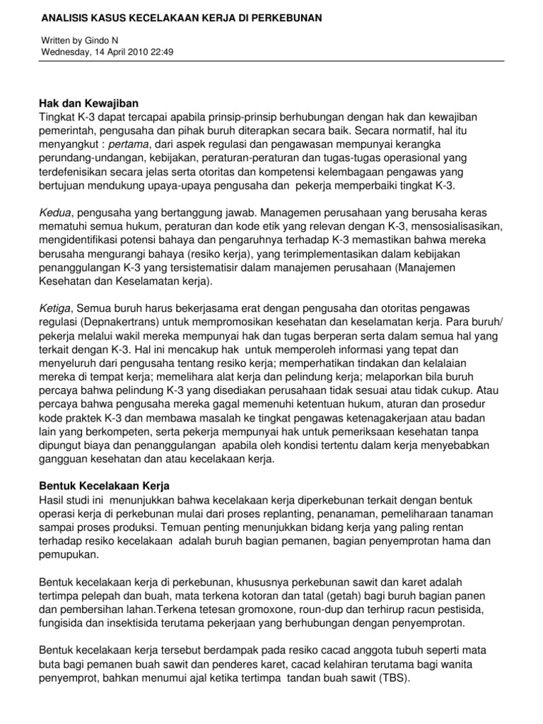 Contoh kasus kecelakaan kerja di industri. Kecelakaan kerja pada karyawan di mesin dinamo pabrik bagian pakaian korban yang tersangkut puli dinamo yang sedang berputar musibah bermula sebelumnya sekitar pukul 0740 saat akan dilakukan penggantian jam kerja korban mengambil sampel lateks dibagian produksi. Abstrak keselamatan dan keseshatan kerja k3 merupakan hal yang wajib diketahui oleh para pekerja dalam menjalankan pekerjaannya. Sepanjang 2018 terdapat 173105 kasus kecelakaan kerja dengan klaim jaminan kecelakaan kerja jkk sebesar rp 12 triliun. Kecelakaan kerja terjadi di area tambang batu kapur pt semen indonesia persero tbk di desa karang lo kecamatan merakurak tuban. Kecelakaan kerja pada karyawan di mesin dinamo pabrik. Kecelakaan bisa terjadi di mana saja salah satunya di tempat kerja.