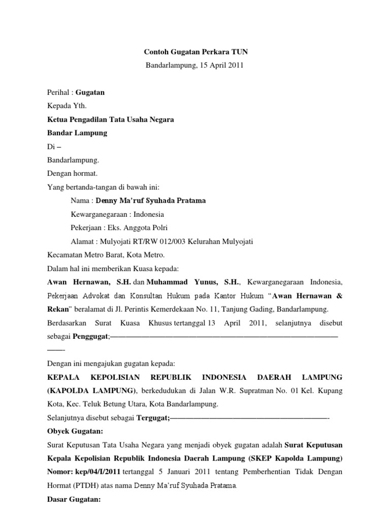 Majelis hakim di pengadilan negeri jakarta selatan menjatuhkan vonis delapan tahun penjara kepada inong malinda dee binti siswo wiratmo 49. Contoh kasus dan putusan pengadilan tata usaha negara yang pertama berkaitan dengan pulau d salah satu pulau buatan yang penggarapannya dilaksanakan oleh pt kapuk naga indah. Oleh karena itu perlu suatu contoh analisa ka sus agar mampu memberi sedikit pemahaman dalam memahami penyelesaian sengketa tun ini. Mohon maaf mengganggu waktu dan rutinitas ibubapaksaya cuma bisa menyampaikan melalui komentar ini dan semoga bermanfaat saya seorang honorer baru saja lulus jadi pns tahun 2015 yang lalu dan saya ingin berbagi cerita kepada anda bahwa dulunya saya ini cuma seorang honorer di sd negeri 6 bogor sudah 12 tahun saya jadi tenaga honor belum diangkat jadi pns bahkan saya sudah 4 kali. Senin 30 april 2007. Keberadaan pbb merupakan salah satu faktor yang dapat menyelesaikan sebuah kasus sengketa internasional maka daripada itu pbb sangat dibutuhkan setiap negara.