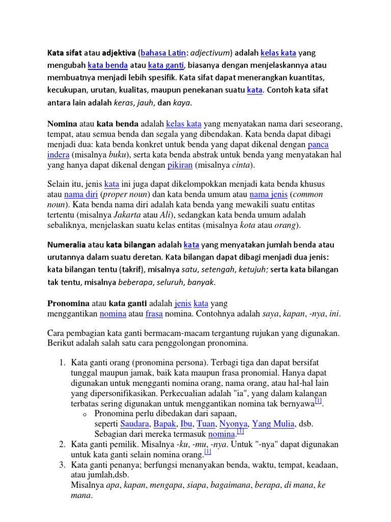 Pengertian contoh kata abstrak dan kata konkret dalam bahasa indoensia terdapat banyak beberapa golongan kata salah satunya adalah kata abstrak dan kata konkret. Kata kata benda yang tak berwujud dapat dibentuk dari kata sifat adjective kata benda umum common noun contoh kalimat verb dan kata kata lainnya. Kata kata benda yang tak berwujud dapat dibentuk dari kata sifat kata benda umum common noun contoh kalimat verb dan kata kata lainnya. Kata benda abstrak adalah kata yang menyatakan nama dari sebuah benda namun benda yang dimaksudkan tersebut merupakan benda yang tak kasat mata atau tidak dapat ditangkap oleh panca indera seperti nama keadaan nama pekerjaan nama sifat nama ukuran dan lain sebagainya. Kata benda dalam bahasa inggris kata benda adalah kata yang menyatakan orang tempat hewan benda dan segala yang dibendakan pikiran panca indera profesi dan lain sebagainyacontoh dari kata benda misalnya buku perpustakaan meja dsb. Contoh kata benda abstrak dalam bahasa indonesia setelah mengetahui contoh kata benda konkret dalam bahasa indonesia kini kita akan mengetahui jenis jenis kata benda lainnya yaitu kata benda abstrak.