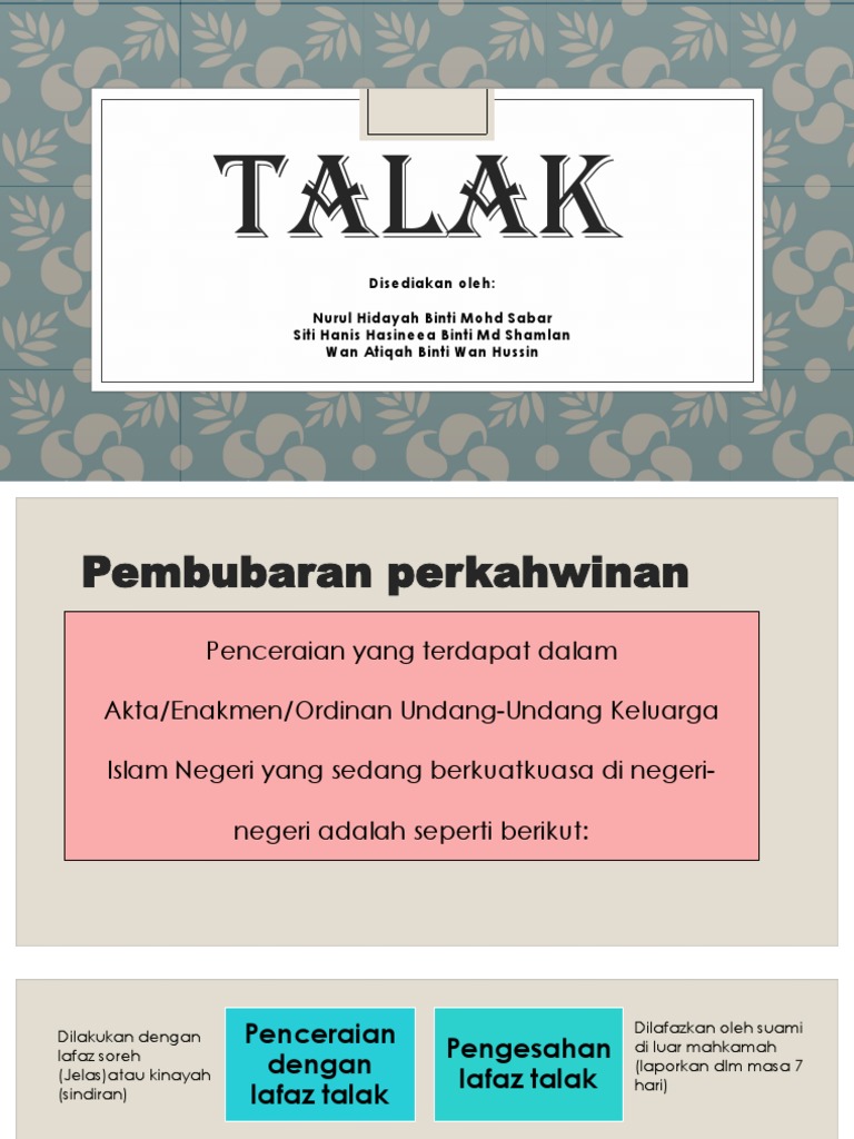 Yha sebaiknya dalam mengurus perceraian selain mengurus perceraian secara agama juga uruslah perceraian secara resmi hukum negara. Aku telah melepaskan menjatuhkan talak untuk engkau 3. Adapun contoh lafaz yang sharih diantaranya. Hari ini aku ceraikan kau. Jika kata tersebut tidak punya arti apa apa maka tidak bisa dimaksudkan cerai dan itu dianggap kata yang sia sia dan tidak jatuh talak sama sekali. Talak merupakan perkara yang dibenci allah swt tetapi.