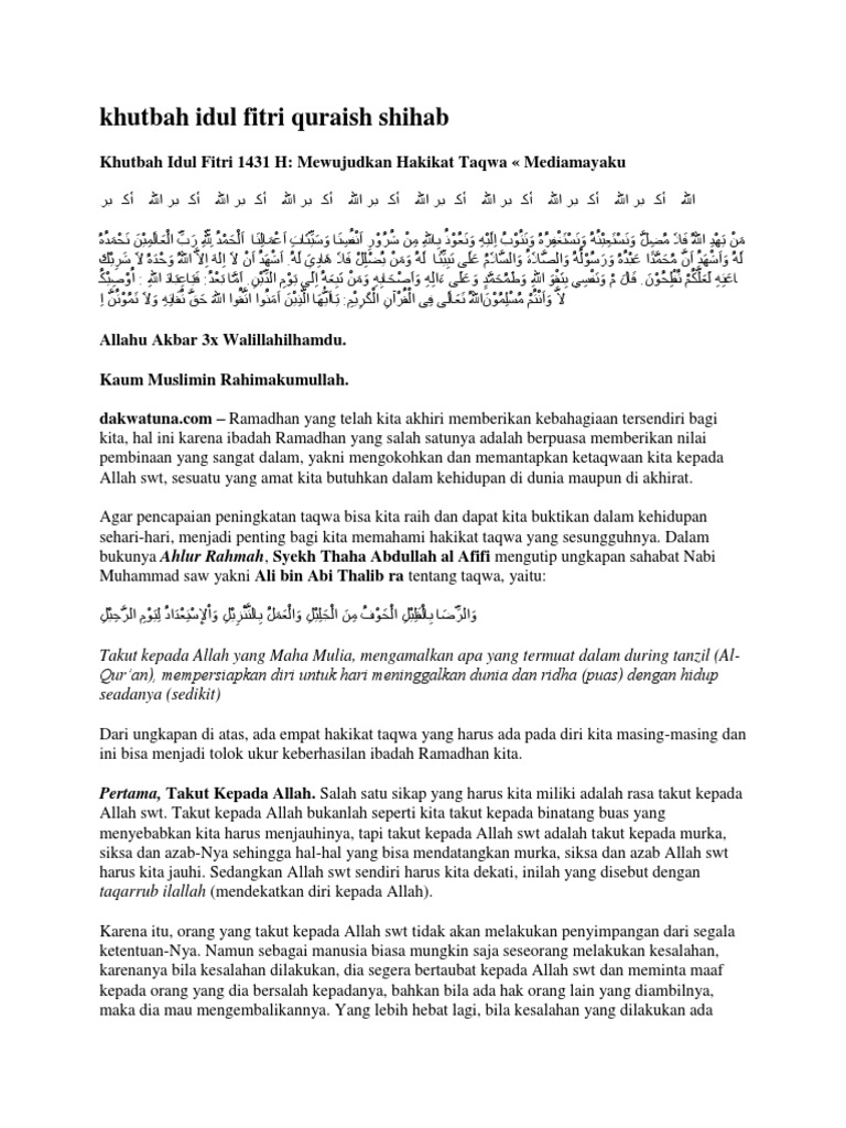 Menjaga hati dan tiga pesan ramadhan ada juga judul ini silahkan klik. Blog khusus doa berikut ini kami share contoh khutbah idul fitri yang singkat padat dan penuh maknaseperti diketahui khutbah pada hari raya dilakukan setelah selesai sholat ied. Contoh materi khutbah idul fitri 2020 singkat yang membuat jamaah menangis 1441 h hari raya idul fitri merupakan waktu istimewa yang patut di syukuri oleh kita semua pada saat itu umat muslim merasa gembira karena mereka sudah lulus menunaikan sebuah kewajiban agung yang hanya datang satu kali setahun yaitu berpuasa bulan ramadhan. Menjaga hati tiga pesan ramadhan assalamualaikum warahmatullahi wa barakatuh. Ustaz abdul somad memberikan contoh khutbah idul fitri singkat di rumah untuk umat muslim. Contoh khutbah berikut ini dapat anda sampaikan seusai salat idul fitri di rumah.