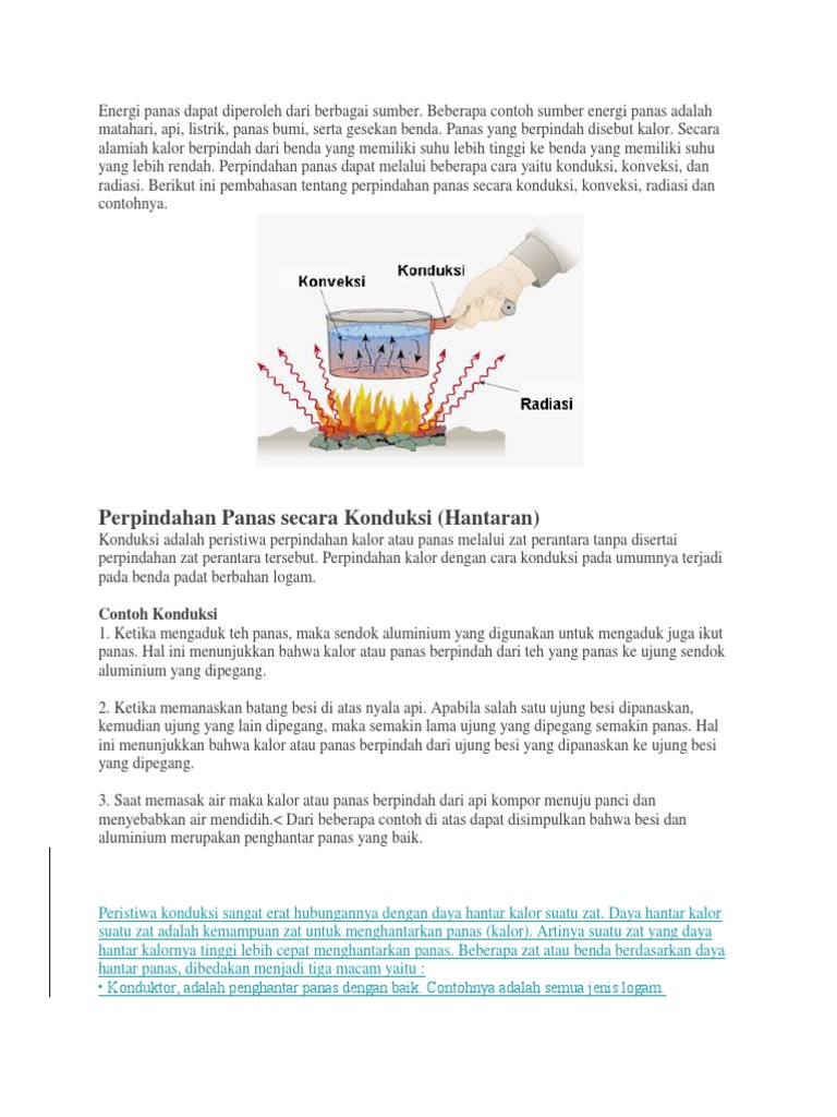 Contoh perpindahan panas secara konduksi kehidupan sehari hari konduksi termal juga disebut konduksi kalor terjadi di dalam tubuh atau di antara dua benda yang bersentuhan tanpa melibatkan aliran massa dan pencampuran. Dalam kehidupan sehari hari peristiwa konduksi dapat diamati misalnya pada saat memasak air menggunakan panci logam di atas api kompor. Diatur oleh hukum termodinamika perpindahan kalor apa itu 20 contoh perpindahan kalor secara konduksi dalam kehidupan sehari hari dibahas dengan jelas disini semoga bermanfaat. Contoh konduksi konveksi dan radiasi dalam kehidupan sehari hari. 10 contoh konduksi dalam kehidupan sehari hari lengkap written by ivanwira wednesday may 31 2017 add comment semuacontoh yoo para pembaca dan pelajar kali ini saya akan membagikan beberapa contoh konduksi yang merupakan salah satu materi pembelajaran ilmu pengetahuan alam yang mungkin teman teman butuhkan sebagai referensi untuk mengerjakan tugas. By nurul hidayah on januari 30 2017 at 333 am.