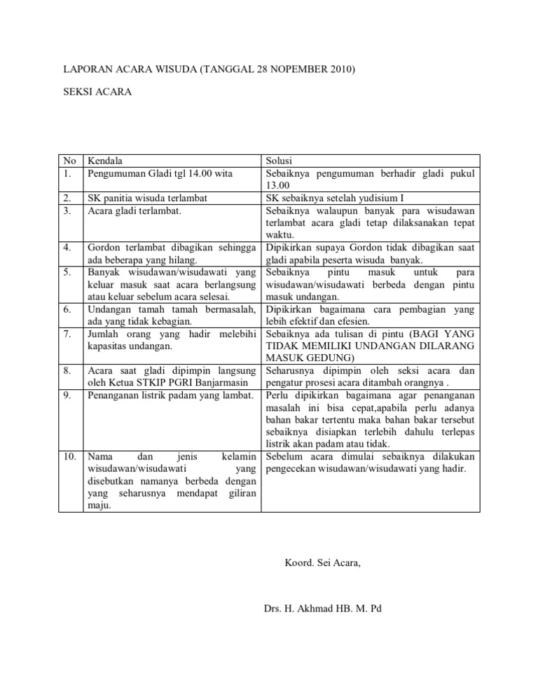 Contoh laporan kegiatan acara. Demikian laporan pertanggung jawaban ini kami buat dengan sebaik baiknya dengan harapan laporan kegiatan ini dapat menjadi acuan demi perkembangan kegiatan kegiatan serupa pada periode berikutnya. Contoh laporan kegiatan jika kita bekerja atau memiliki kegiatan di organisasi atau instansi misalnya kita pasti melakukan berbagai kegiatan. Contoh laporan kegiatan jika anda bekerja pada sebuah instansi biasanya melakukan sebuah kegiatan bukanlah hal yang aneh untuk dilakukan. Contoh laporan singkat kegiatan jika kita bekerja pada sebuah institusi atau berorganisasi di sekolah setiap kegiatan yang diselenggarakan baik itu kegiatan pelatihan bakti sosial pramuka lomba 17 agustus dan acara acara lainnya pasti selalu dimintai pertanggungjawabannya entah itu berupa laporan tertulis ataupun dokumentasi berupa foto. Kami menyampaikan terima kasih banyak kepada semua pihak yang telah membantu terlaksananya acara ini sampai acara ini sukses semoga bantuan kalian mendapat balasan dari allah swt. Bagi suatu permasalahan masalah baik berupa pelaksanaan perencanaan ataupun pengendalian kebijaksaan pimpinan.