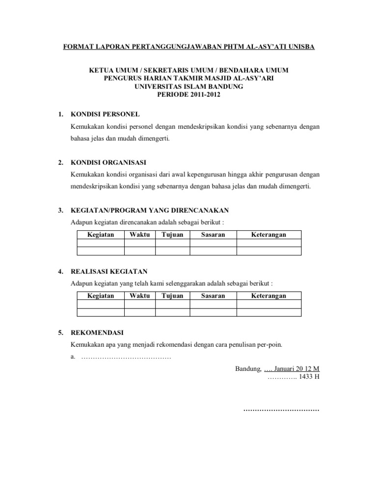 Berikut kami berikan informasi dan referensi seputar lpj kegiatan organisasi. Jangan lupa sertakan kwitansi ataupun faktur sebagai lampiran pertanggung jawaban. Untuk mematuhi peraturan yang ada di kkd dan hampir sepertiga anggota tetap tidak aktif mengikuti rutinitas kegiatan pelatihan organisasi. Laporan pertanggungjawaban lpj di buat sebagai bentuk pertanggung jawaban legal dan tertulis oleh. Kop surat organisasi format laporan tri wulan nama organisasi periode 2005 2007 sekretaris a. Demikianlah laporan pertanggungjawaban ini kami sampaikan.