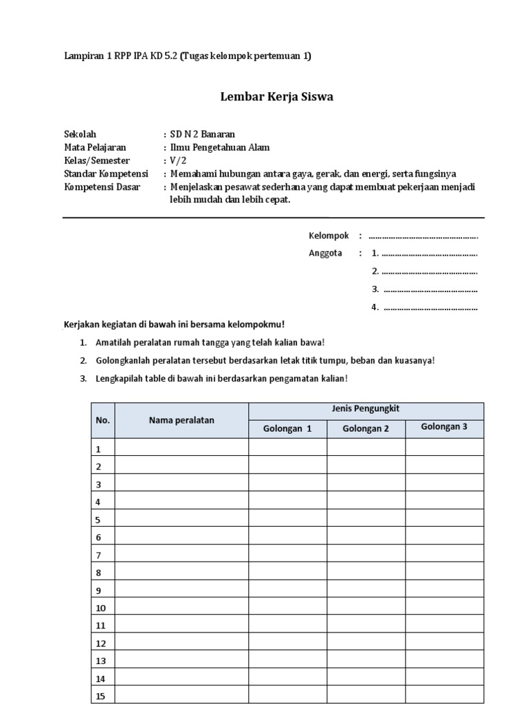 Contoh lembar kerja siswa ipa sd. Rpp sd bahasa indonesia parafrase puisi.