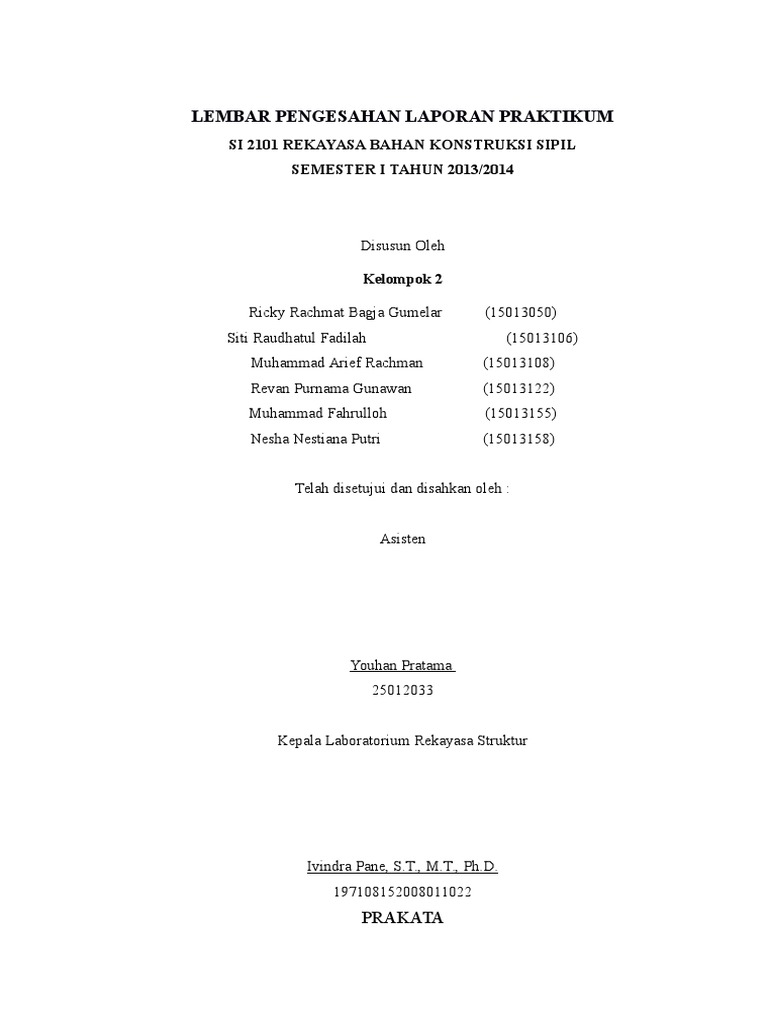 Contoh lembar pengesahan laporan praktikum. Pada entri kali ini saya memposting kan satu contoh laporan yang telah saya buat. Contoh laporan hasil praktikum. Lembar pengesahan laporan praktikum kimia organik ekstraksi minyak ikan dari limbah ikan patin dosen pengampu praktikum kimia organik dengan ini menyatakan bahwa. Termasuk anda yang hendak membuat laporan prakerin. Lembar pengesahan sangat penting dan wajib dalam penyusunan makalah. Lembar pengesahan ini sangat penting gunanya untuk meminta persetujuan kepada suatu pihak kalau pada laporan prakerinpkl ya kepada pembimbing.