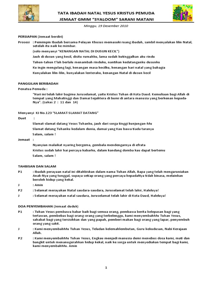 Contoh liturki natal 2016 contoh liturki natal 2017 contoh liturki natal terbaru contoh liturki natal terupdate contoh tata ibadah natal 2016 contoh tata ibadah natal 2017 contoh liturki natal lengkap liturki ibadah natal kreatif kumpulan liturki natal sekolah minggu liturki natal pemuda kumpulan liturki. Menyanyi tuhan allah hadir tuhan allah hadir pada saat ini hai sembah sujud disini diam dengan hormat tubuh serta jiwa tunduklah menghadap dia marilah umatnya hatimu serakan dalam kerendahan. Tata ibadah liturgi dan tulisan tulisan kristen worship service liturgy and christiani script. Gereja juru selamat tahun 2019. Berdiri masuk gerbang nya bersyukur masuk gerbang nya bersyukur dengan puji pujian bersuka di hadirat nya mari besarkan agung nama nya puji dia tiuplah sangkakala musik dan tarian semua makhluk di bumi di surga dengan sgnap hati naikkan pujian sebab tuhan baik sebab tuhan baik sebab tuhan baik bahwasanya untuk selamanya sebab tuhan baik sebab. Liturgi ibadah kreatif pemuda liturgi ibadah kreatif pemuda.