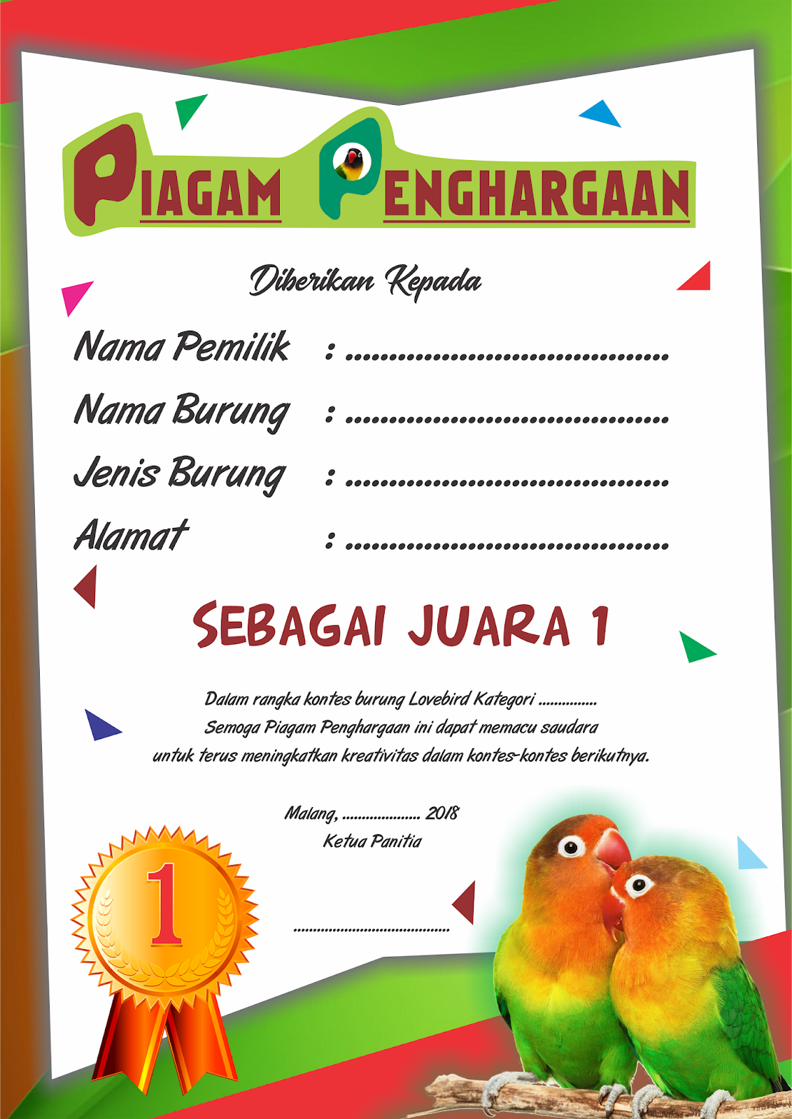 Berikut ini pola perawatan dan setelan lomba untuk burung lovebird. Itulah yang dapat admin bagikan mengenai contoh proposal pengajuan dana lomba pramuka. Akan sangat menghabiskan waktu kita dan hasilnya nol. Burung lovebird ini memang menjadi salah satu burung yang tengah naik daun di indonesia. Contoh saja lovebird jalal sang juara merupakan salah satu lovebird paruh putih. Cara diatas bisa anda aplikasikan untuk burung lovebird yang ingin anda prospek sebagai burung lovebird untuk lomba sekian informasi mengenai cara merawat burung lovebird semoga dapat membantu anda terima kasih.