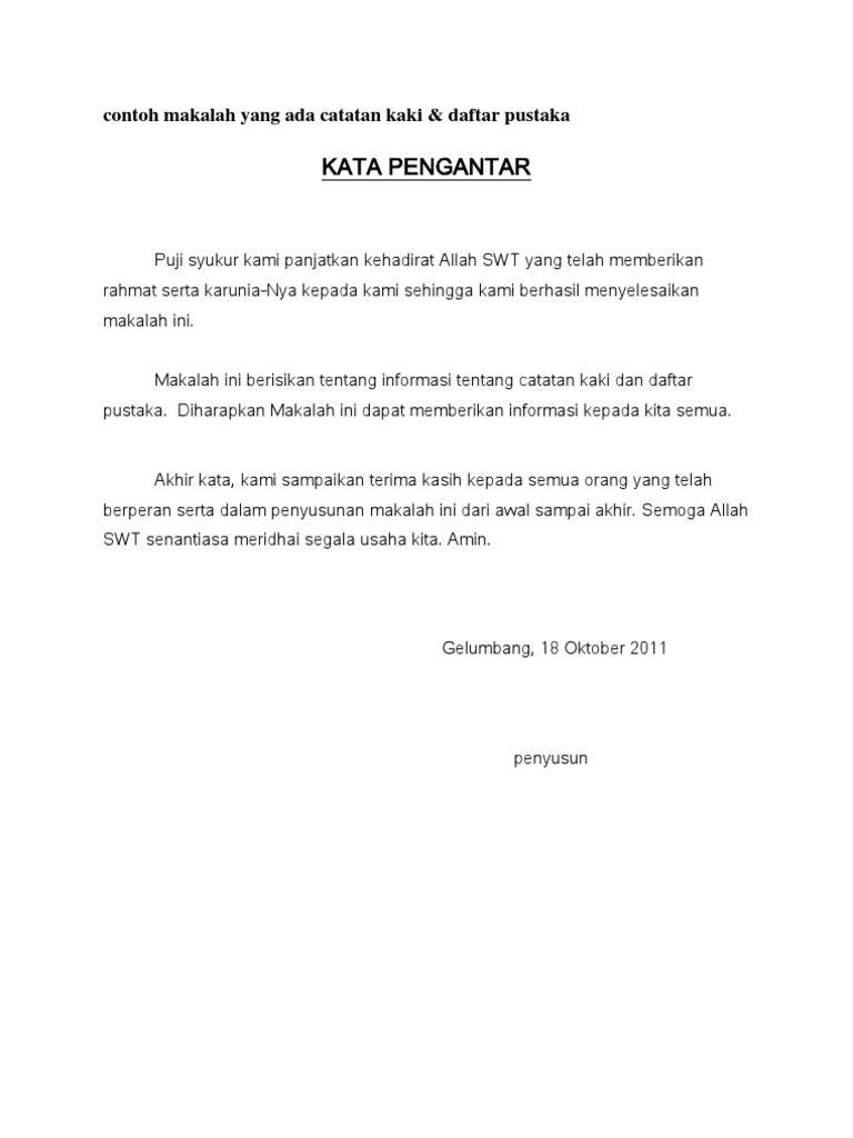 Contoh makalah kata pengantar. Puji syukur alhamdulillah kami panjatkan ke hadirat tuhan yang maha esa karena telah melimpahkan rahmat nya berupa kesempatan dan pengetahuan sehingga makalah ini bisa selesai pada waktunya. Dalam menulis karya tulis kata pengantar merupakan komponen yang paling utama serta tidak boleh anda lewatkan begitu saja. Contoh kata pengantar makalah 1. Contoh kata pengantar makalah sejarah. Karena makalah atau laporan akan terlihat kurang baik dan lengkap bila tidak disertai dengan ucapan kata pengantar di dalamnya. Contoh kata pengantar dalam membuat sebuah karya ilmiah anda diharuskan untuk menulis secara terperinci yang berisikan halaman kata pengantar halaman daftar isi isi dan terakhir penutup.