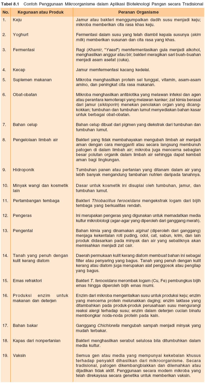 Sayangnya kandungan gizi yang tinggi tidak hanya menarik bagi manusia. Tempe tempe merupakan salah satu contoh produk bioteknologi konvensional yang sudah dikenal luas di masyarakat kita. Fermentasi adalah suatu teknik pengolahan makanan yang mana bahan pokok akan menjadi makanan siap saji dengan menggunakan mikroorganisme tertentu. Khamir yang tidak diinginkana dalah yang ada pada makanan dan menyebabkan kerusakan pada uice buah sirup molase madu jelly daging dan sebagainya. Contoh pupuk superposfat yang dibuat dengan teknologi bio sp menggunakan mikroorganisme pelarut phosfat. Mikroba yang dapat merusak makanan tidak dapat hidup pada makanan.