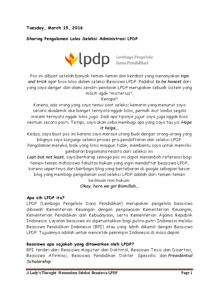 Contoh motivation letter beasiswa lpdp. Artikel tersebut sengaja saya tulis untuk membantu teman teman pembaca supaya lebih memahami apa sih maksud dari penulisan motivation letter. Pertukaran pelajar student exchange. Kegiatan akademis riset pekerjaan pencapaian yang. Dengan kata lain melalui motivation letter tim reviewer universitas atau beasiswa akan memberikan kesempatan untuk mengetahui siapa kita sebenarnya dan apa yang inigin kita lakukan. Nah pada artikel kali ini saya akan coba menjelaskan lebih dalam. Apalagi setiap motivation letter ini ditulis dengan menggunakan bahasa inggris maka kita akan dengan mudah menemukannya di google contoh motivation letter yang berasal dari negara mana saja di dunia ini.