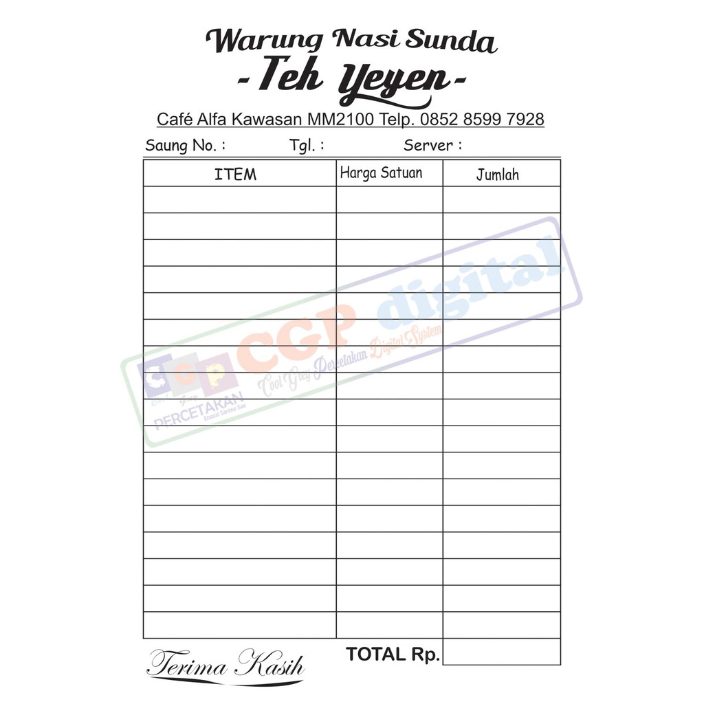 Contoh nota kuliner gambar di atas adalah gambar contoh nota untuk kuliner dengan ukuran 16 folio atau 14 x 14 cm yang cocok di pakai untuk nota warung makan restoran atau nota cafe. Didesain dengan menggunakan coreldraw logo bisa anda ganti warnanya. Isinya adalah berupa barang dan total harga yang telah kita belanjakan. Jual cetak nota bon ncr untuk restoran cafe warung makan 13 folio 2 ply dengan harga rp160000 dari toko online mahkotamuria kab. Tapi apakah sobat tahu bahwa nota juga memilik banyak jenis dan semuanya tergantung. Beberapa instansi juga membutuhkan nota untuk laporan pertanggung jawaban mereka.
