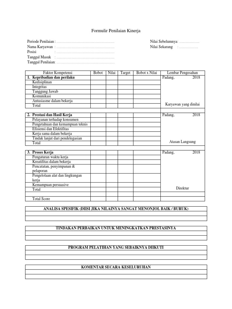 Contoh penilaian kinerja karyawan bank. Menurut mondy n o e2005 penilaian kinerja adalah tinjauan formal dan evaluasi kinerja individu atau tugas tim. Latar belakang manajemen kinerja pengertian proses contoh konsep pentinnya produktivitas kerjakinerja telah menjadi pusat perhatian dari berbagai kalangan baik pemerintah maupun perusahaan atau organisasi secara umum. Dan untuk menilai kinerja sebuah bank menggunakan financial ratio. Pertanyaan pertanyaan dalam survei evaluasi kinerja karyawan ini bertujuan untuk memudahkan manajer dan supervisor dalam memberikan feedback langsung terhadap aspek kerja yang spesifik pada karyawan termasuk area peningkatan kebutuhan pelatihan tambahan area untuk kinerja khusus dan perkiraan kinerja di masa yang akan datang. Syarat penilaian kinerja suatu sistem penilaian kinerja harus mampu menggambarkan secara akurat kinerja yang tipikal dari seorang karyawan. 10 contoh surat lamaran kerja terlengkap.
