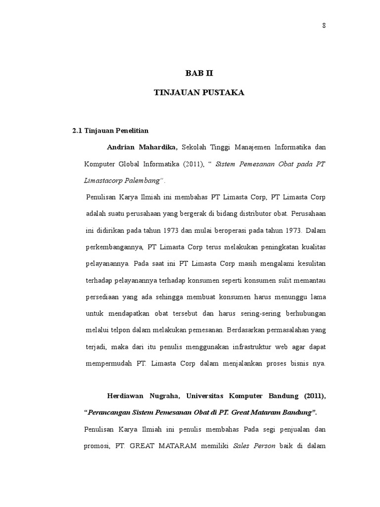 Contoh tinjauan pustaka penelitian. Contoh yang satu ini menyangkut sebuah penelitian dengan berjudul personalisasi di dalam suatu lembaga pemasyarakatan. Dalam penyusunan tinjauan pustaka karya ilmiah melibatkan tentang masalah dan solusi yang di tawarkan. 25 maret 2008 sumber lain menulis sebagai berikut. Dalam penulisan daftar pustaka khusus dengan jumlah kata adalah 3 kata anda wajib memperhatikan perubahan peletakannya saja.