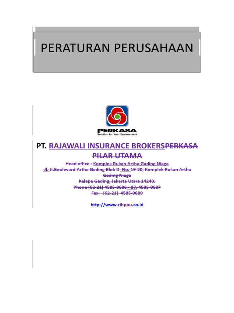 1 peraturan perusahaan ini bertujuan untuk mengatur pelaksanaan syarat syarat kerja hak dan kewajiban perusahaan hak dan kewajiban karyawan serta tata tertib karyawan. 13 tahun 2003 mensyaratkan adanya peraturan perusahaan yang harus disahkan oleh disnaker tempat kantor pusat perusahaan.