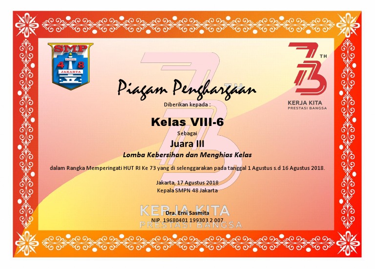 Hari aspriyono 2 januari 2019 1743. Bertempat di halaman kantor bupati pada malam 17 agustus resepsi dan syukuran hari kemerdekaan hut ke 73 bupati lingga menyerahkan piagam penghargaan pemenang lomba desa kelurahan tahun 2018. Zadam saputra adi wijaya. Format piagam penghargaan siswa berprestasi belajardoc lihat. Bingkai piagam penghargaan kegiatan pramukadoc lihat. Adapun beberapa halaman informasi contoh sertifikat lomba yang sangat kami sarankan supaya anda membukanya halaman tersebut masih berkaitan erat dengan piagam.