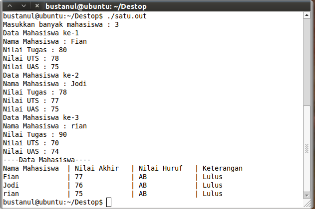 Gambar 5 12 Tampilan Hasil Array 2 Dimensi Menggunakan Data
