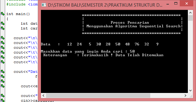 Pengertian dan contoh program sorting pada c. Contoh program c sequential search mencari posisi letak angka. Jika suruh masukin kode undangan masukkan ba97187 anda otomatis dapat 03 dari kode tsb. Sorting atau pengurutan diartikan sebagai proses penyusunan kembali sekumpulan objek ke dalam urutan tertentutujuan pengurutan adalah mendapatkan kemudahan dalam pencarian anggota dari suatu himpunan disamping dapat mempercepat mengetahui data terbesar dan data terkecil misalkan kita ingin mengetahui perolehan nilai tertinggi dan nilai terendah dari hasil ujian. Searching adalah pencarian suatu data dalam sekumpulan data. November 25 2019 december 6 2019.
