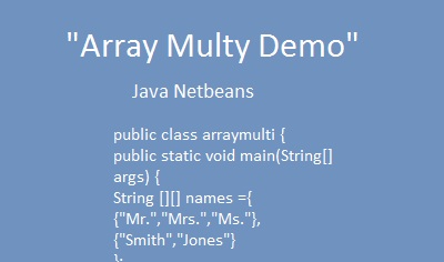 Dalam kasus diatas kita membuat sebuah kelas bernama totalangka. Biar makin mantap pemahaman kita tentang array multi dimensi mari kita coba membuat sebuah program. Percabangaan seleksi menggunakan if. Array merupakan sebuah variabel yang di dalamnya dapat menyimpan banyak data dengan tipe data yang sama. Silahkan buat class baru bernama ruangkelas kemudian ikuti kode berikut. 5 contoh program java sederhana array 2 dimensi berikut kami berikan 5 contoh program array larik dua dimensi menggunakan bahasa java netbean.