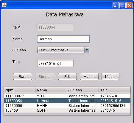 Contoh program java input data mahasiswa. Membuat form input data mahasiswa atau halaman input data mahasiswa dengan menggunakan html dasar. Program ini sangat sederhana yang kami peruntukan bagi teman teman yang baru terjun ke dunia pemrograman tentu untuk membuat program input biodata akan terasa sangat sulit jika teman teman masih belum paham dasar dasar dari bahasa pemrograman c namun jangan khwatir karna pemrograman input data mahasiswa ini sangat sederna dan mudah di mengerti. Private void tampildata. Ada beberapa metode yang dapat kita gunakan dalam menentukan nilai mahasiswa atau siswa menggunakan bahasa pemrograman java. Netbeans java runtime environmentjre dan java development kitjdk. Untuk membuat program input data mahasiswa anda perlu menginstall aplikasi seperti.
