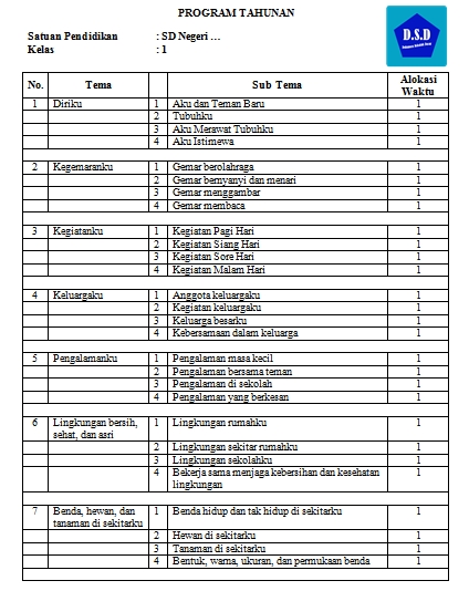 Contoh program tahunan sd. Dibawah sudah disediakan beberapa alternatif link yang bisa dijadikan sebagai pilihan. Perangkat pembelajaran menjadi bagian penting yang harus dimiliki oleh guru seperti prota program tahunan untuk kelas 1 jenjang sdmi semester 1 2 revisi terbaru yang coba saya bagikan kali ini. Meningkatkan profesional disiplin dan komitmen yang tinggi serta tanggungjawab dalam pelaksanaan tugas sesuai dengan tugasnya masing masing. Berikut contoh program tahunan prota semester 1 dan 2 untuk sekolah dasar sd untuk semua kelas yang bisa didownload mulai dari kelas 1 sampai kelas 6 sd. Serta ada program tahunan untuk guru mata pelajaran pendidikan agama islam pai bahasa inggris seni budaya dan ketrampilan sbk dan guru penjaskes. We would like to show you a description here but the site wont allow us.