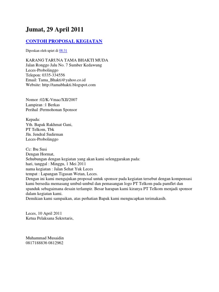 Proposal jalan sehat 1906 ringga arie suryadi 1 comment. Contoh proposal jalan sehat. Contoh program kreativitas mahasiswa penelitian. Balaidesa warungering warungering kedungpring lamongan 62272 2.