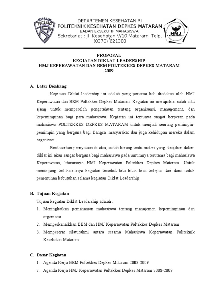 Program kerja badan eksekutif mahasiswa bem fti 2009 vi. Oleh karena itu kegiatan lkmm diangkat dengan alasan agar mahasiswa fakultas keguruan dan ilmu pendidikan. Download contoh proposal kegiatan pramuka. Kumpulan contoh proposal kegiatan mahasiswa approved bahrililmi 4032013. Proposal kegiatan sangat sering digunakan yang tujuannya tentu saja untuk mendukung suksesnys kegiatan kegiatan yang di adakan terutama dalam hal pendanaan.
