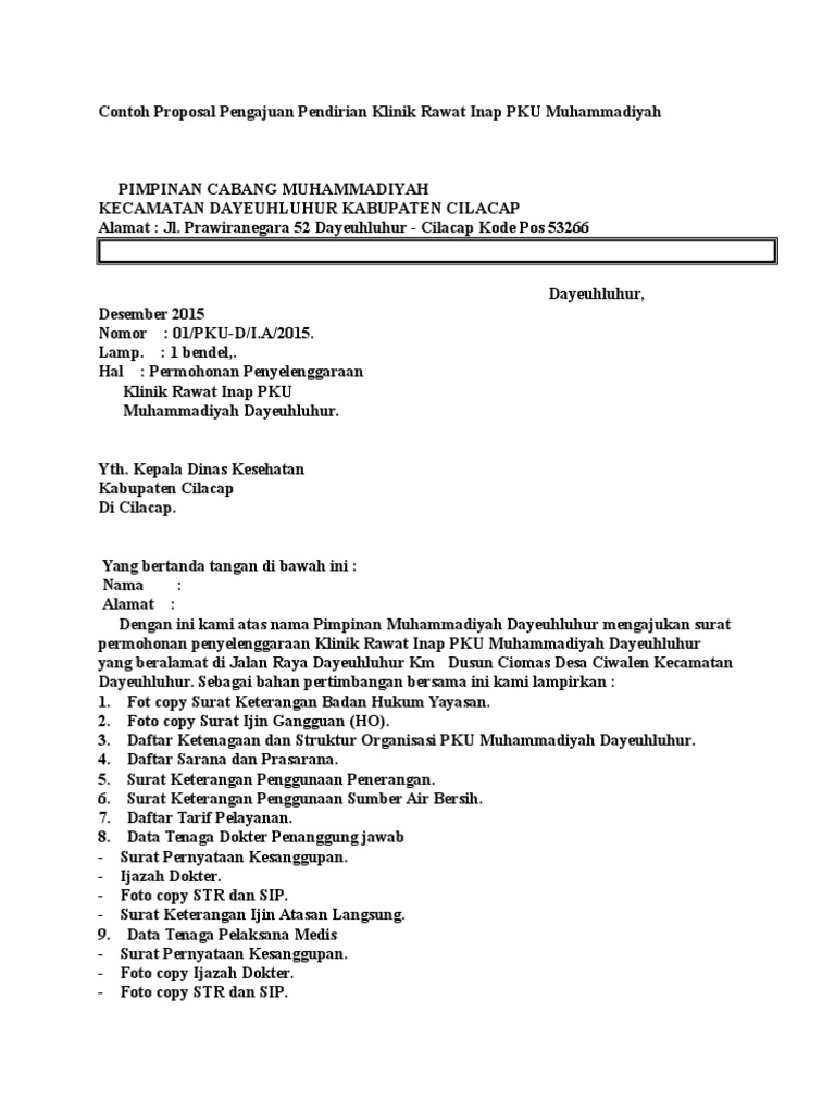01 contoh proposal pendirian klinik. Bangunan dan ruangan bangunan yang direncanakan untuk klinik pratama rawat jalan unsoed merupakan bangunan permanen bekas kampus yang akan direnovasi menjadi. Proposal klinik januari 2013. Contoh proposal pengajuan pendirian klinik rawat inap pku muhammadiyah. Simpan simpan 01 contoh proposal pendirian klinik untuk nanti. Akta pendirian dan perubahan kantor pusat dan kantor cabang jika ada fotokopi.