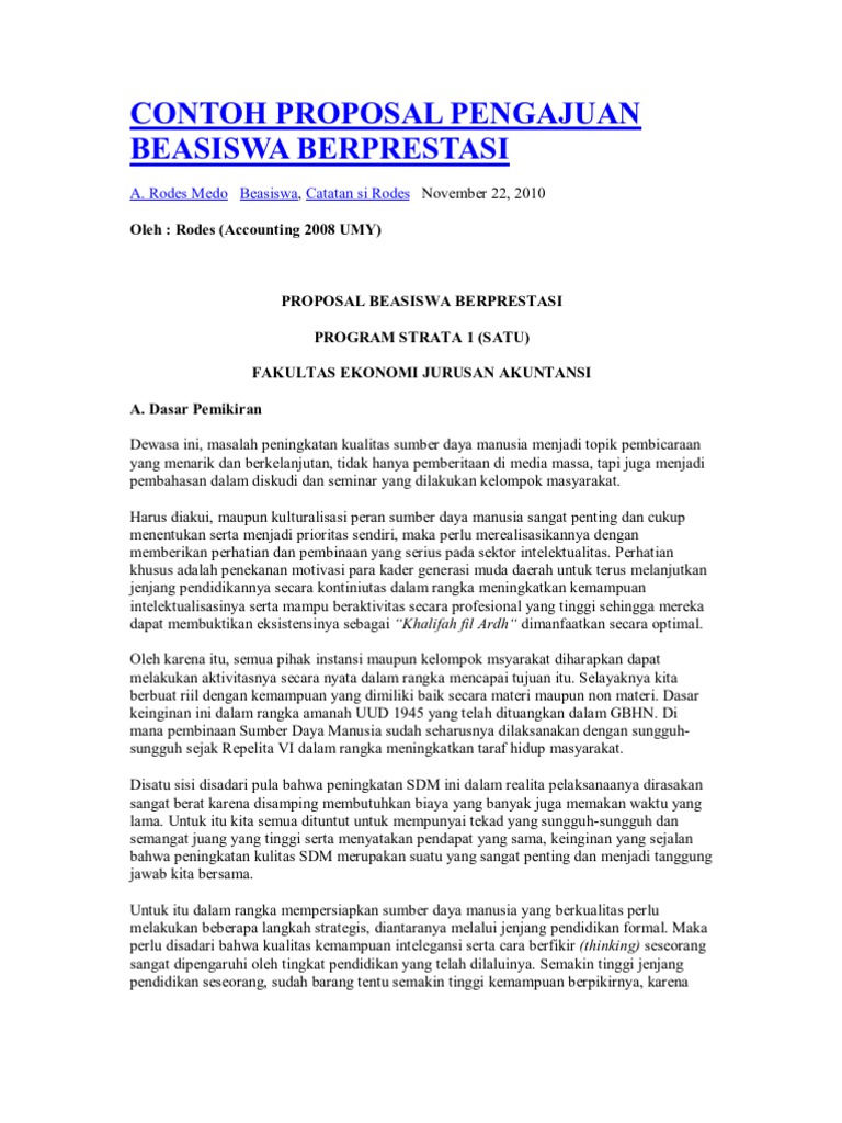 Mushalla nurul agungkorong tanah lapangjorong bukit kilinagari koto baru. Selain pihak pemerintah dan perusahaan ada juga beberapa yayasan yang memberikan beaiswa kepada siswamahasiswa terpilih. Namun demikian sangat sedikit yang bergerak untuk bergerilya mengejar peluang beasiswa. Contoh proposal pengajuan beasiswa pemda. Jurusan pendidikan matematika dan ipa. Contoh proposal pengajuan beasiswa kuliah 10052017 goresan pena mey kata pengantar puji syukur ke hadirat tuhan yang maha esa atas segala rohmat nya sehingga proposal ini dapat tersusun hingga selesai.