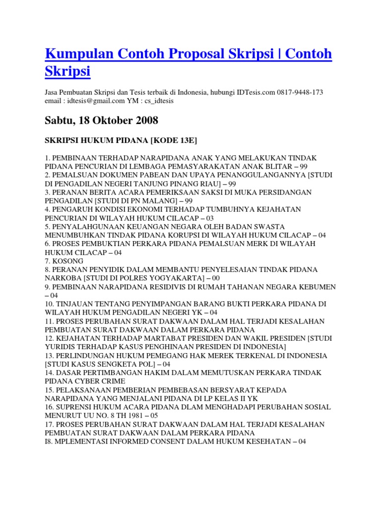 Contoh proposal skripsi tentang permasalahan keadilan terhadap tindak pidana anak di bawah umur description your blog contoh proposal skripsi tentang permasalahan keadilan terhadap tindak pidana anak di bawah umur by ilmu hukum. Contoh 200 judul skripsi hukum pidana paling mudah dikerjakan patut teman teman pertimbangkan sebagai bahan referensi pemilihan judul skripsi karena mudah dikerjakan dan dapat mempermudah teman teman dalam menyusun skripsi. Hukum acara pengadilan anak djambatan jakarta. Oleh karena itu setiap anak seharusnya mendapatkan haknya untuk bermain belajar dan bersosialisasi. Menyadari kebutuhan tersebut kami menyediakan berbagai macam contoh skripsi hukum pidana dengan berbagai variasi judul yang beraneka ragam. Contoh proposal skripsi sekolah.