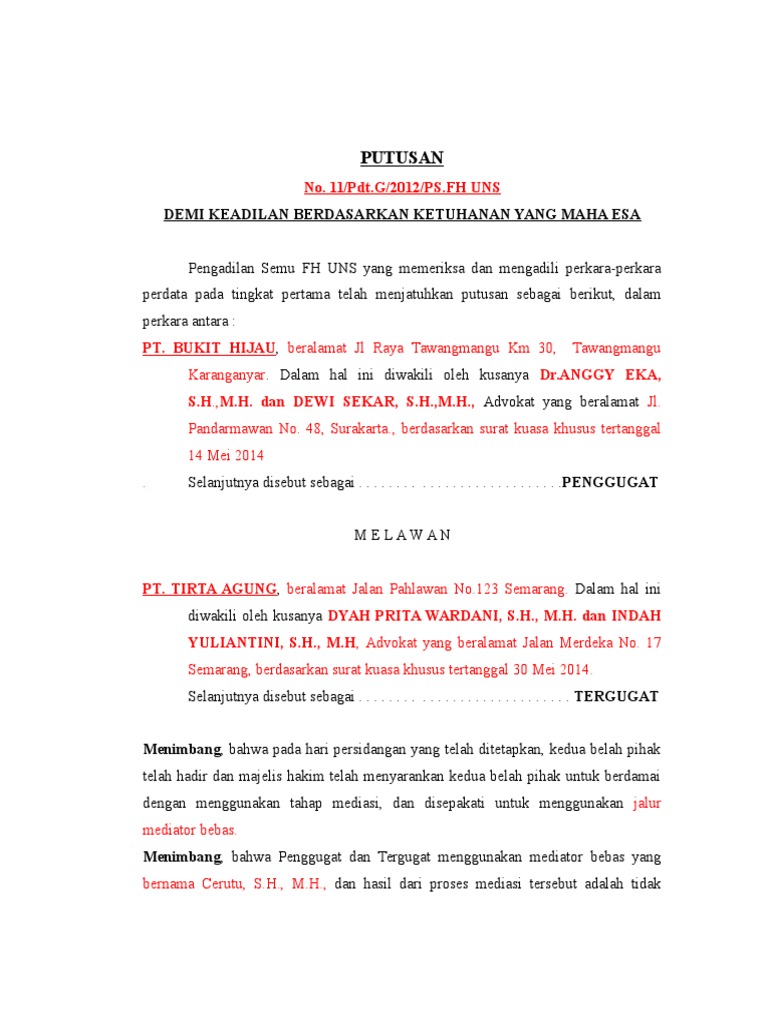 Contoh putusan sela perdata. Oleh karena itu hakim diminta segera menjatuhkan putusan sela agar tergugat dihukum untuk segera memperbaiki atap rumah yang rusak. Putusan yang dijatuhkan oleh hakim guna mempersiapkan dan mengatur pemeriksaan perkara tanpa mempengaruhi pokok perkara dan putusan akhir. Sebagai ketua majelis sigit permana s sh. Nomor 93puu x2012 tentang pencabutan pasal pasal 55 ayat 2 undung undang nomor 21. Demikian putusan sela ini dijatuhkan dalam permusyawaratan majelis hakim pengadilan semu fh uns pada hari senin tanggal 5 maret 201 2. Putusan yang berisi bermacam macam perintah terkait masalah pembuktian dan dapat mempengaruhi putusan akhir.